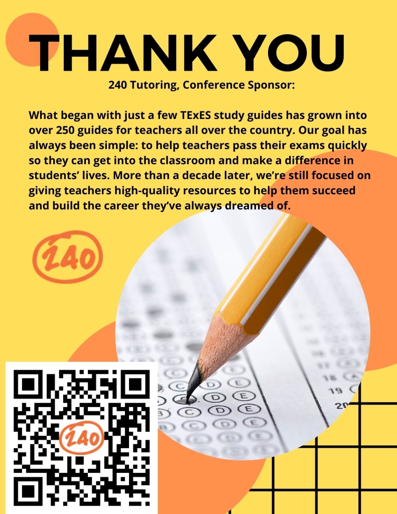 Thank you to our conference sponsor, 240 Tutoring! As a company which thrives on passion for education, 240 Tutoring has heavily influenced the lives of many educators with incredible training and preparation services. The intention behind their mission has positively impacted school systems for over a decade, and we are grateful for their continued dedication in benefitting student lives.